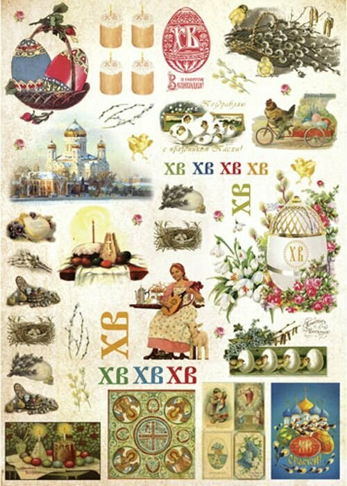 Купить Рисовая бумага для декупажа Craft Premier "Пасха - русская1", формат А4