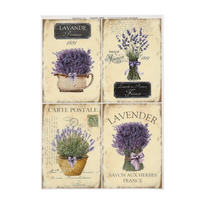 Декупажная карта "Букет лаванды" плотность 45 г/м2. формат А4 интересное: