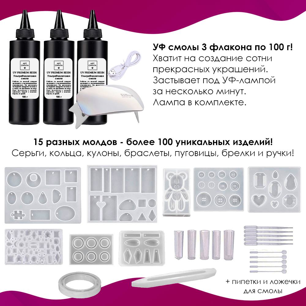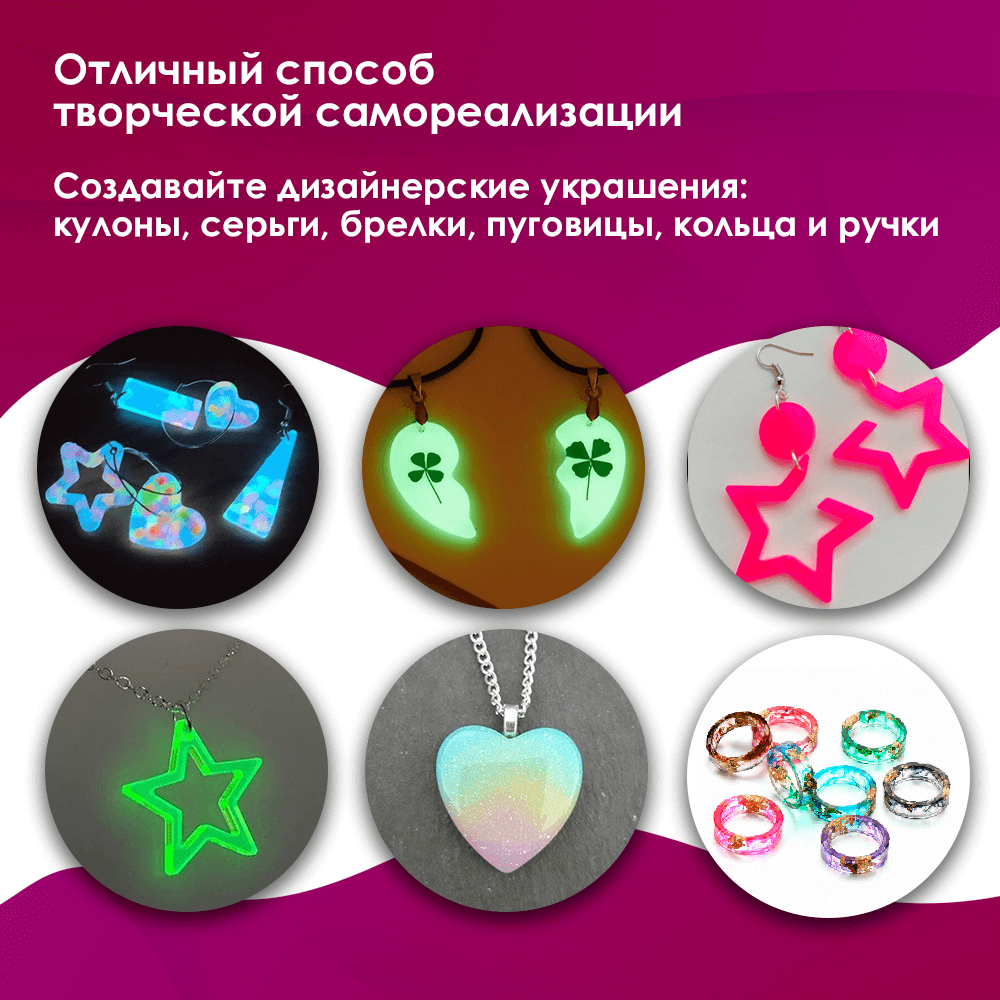 Купить УФ эпоксидная смола для творчества. Набор для создания украшений (сережки, кулоны, кольца) из ювелирной смолы