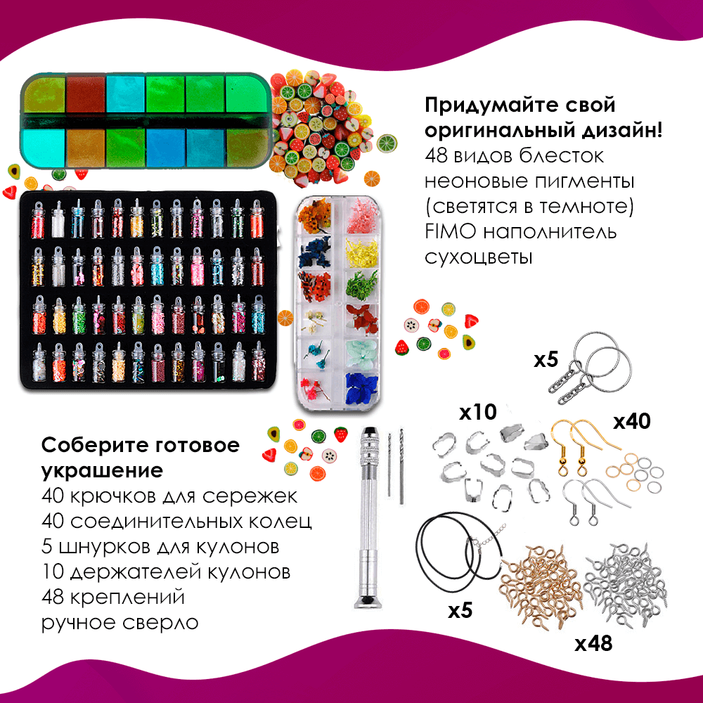 Набор для творчества. Создание украшений из ювелирной смолы. Эпоксидная смола для творчества.