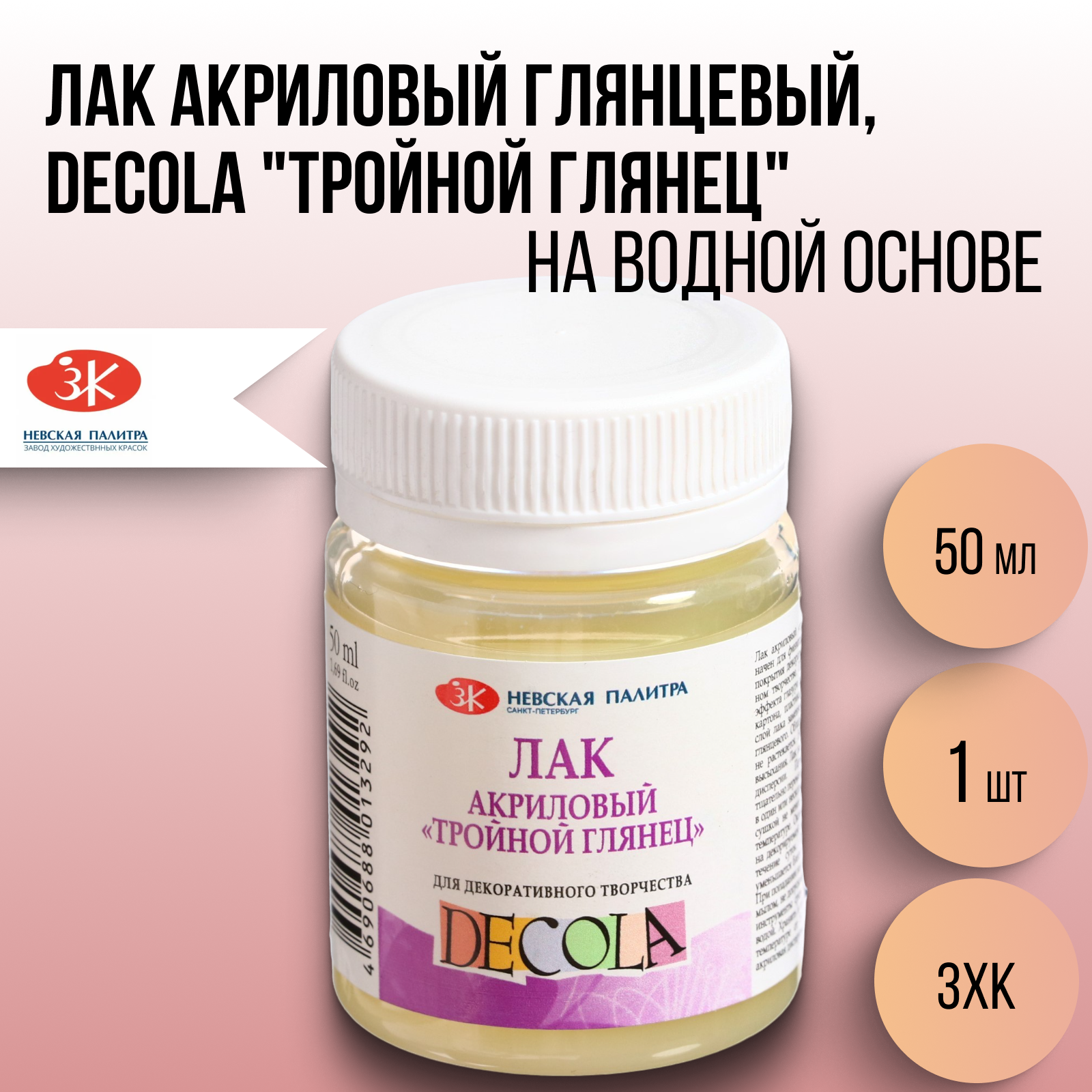 Лак акриловый глянцевый, на водной основе 50 мл, ЗХК Decola "Тройной глянец" 5828961 интересное: