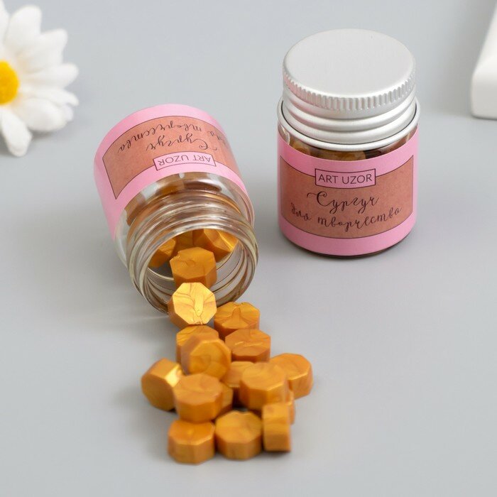 Сургуч в гранулах в баночке "Восьмигранник" золото 2х9 гр набор 2 шт 4,5х3х3 см интересное: