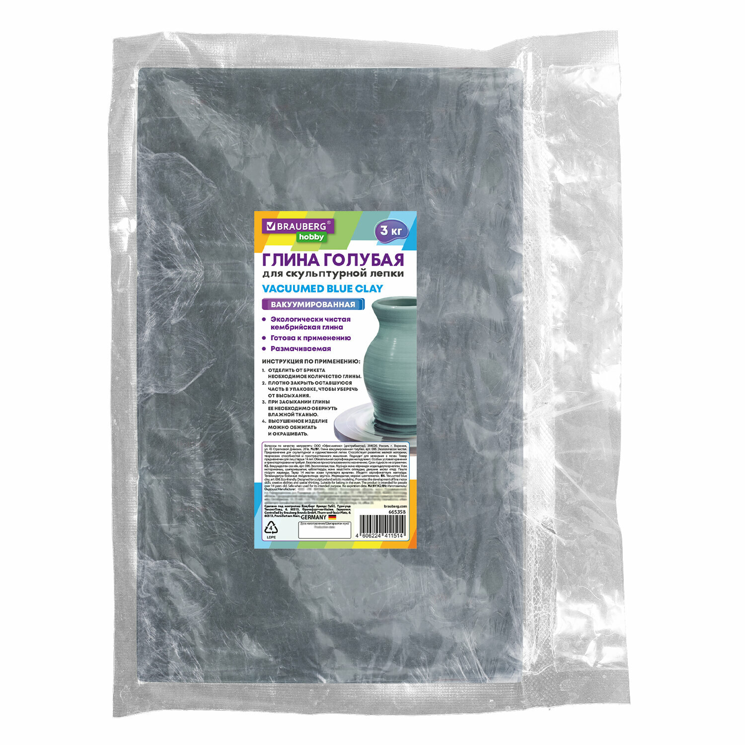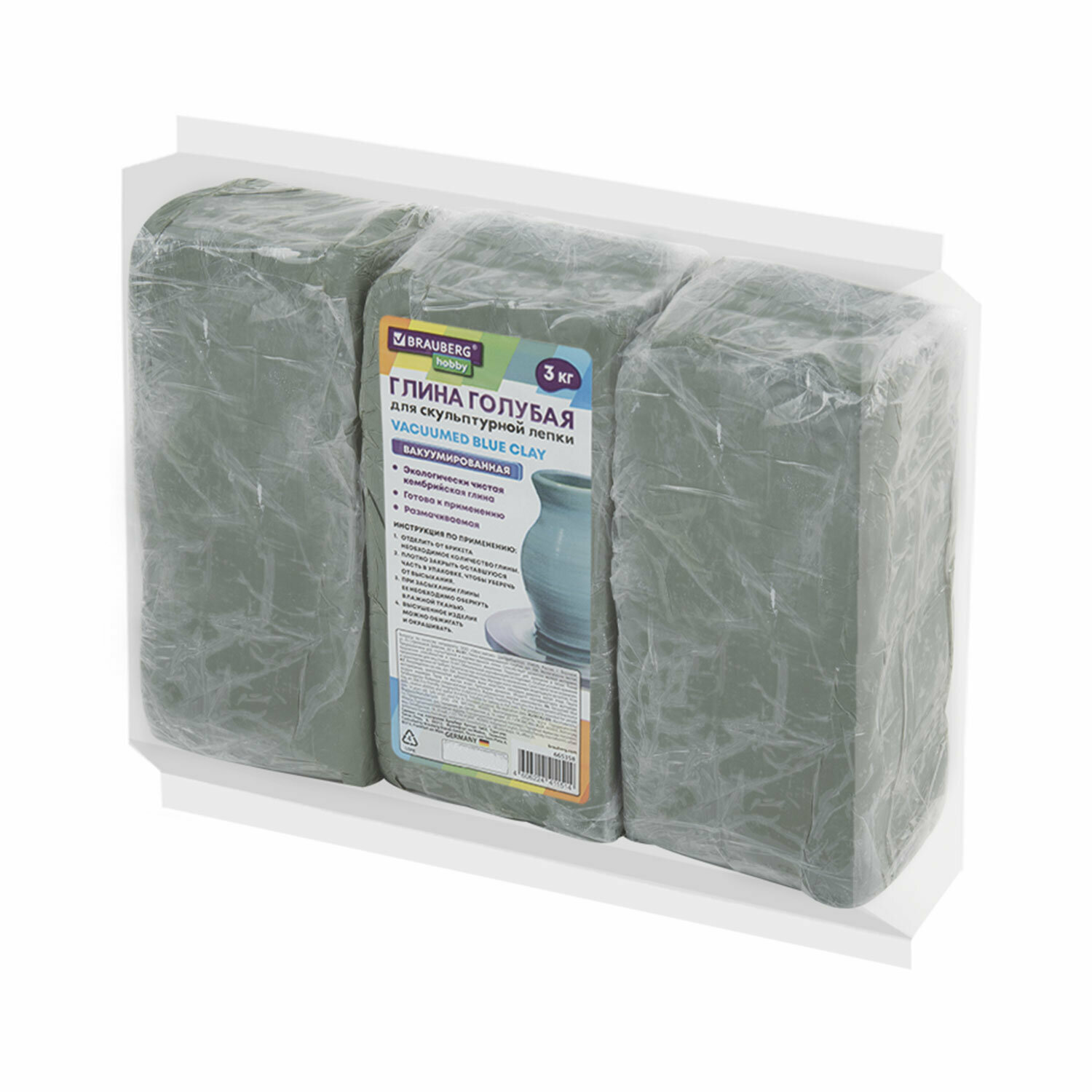 Купить Глина для лепки голубая, 3 кг, вакуумированная, готовая, размачиваемая, BRAUBERG HOBBY, 665358