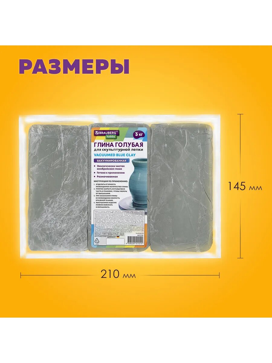 СохранитьГлина для лепки голубая, 3 кг, вакуумированная, готовая, размачиваемая, BRAUBERG HOBBY, 665358 интересное: