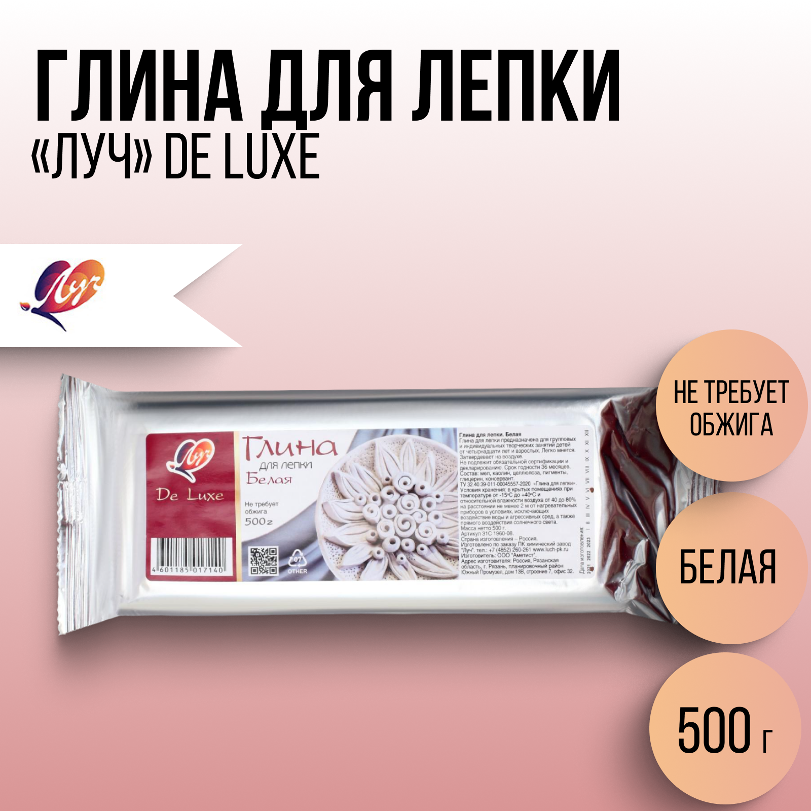 Купить Глина для лепки Белая 500 г «Луч» De Luxe, не требует обжига