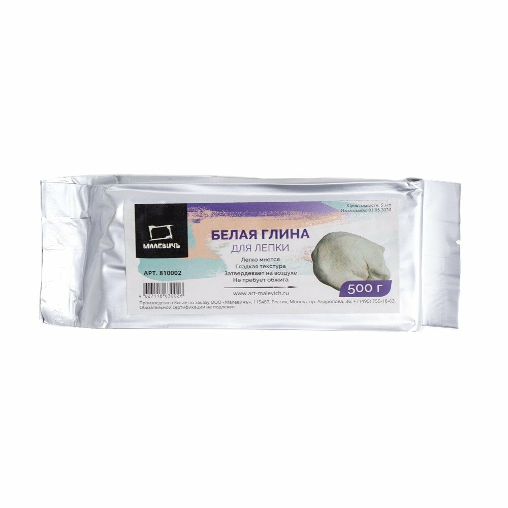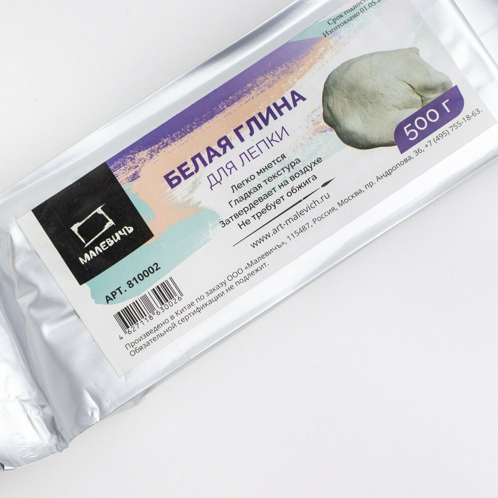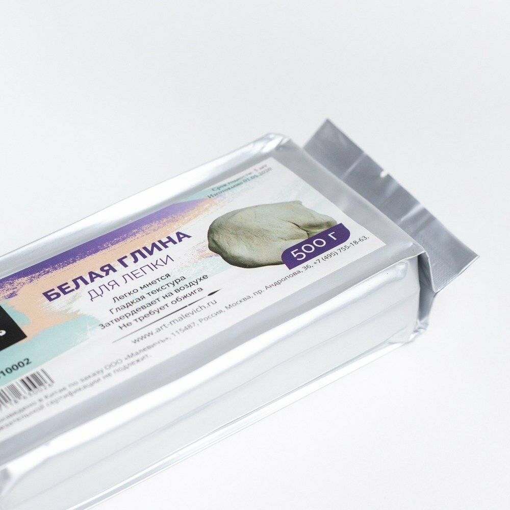 Глина для лепки Малевичъ белая, 500 г, вакуумированная
