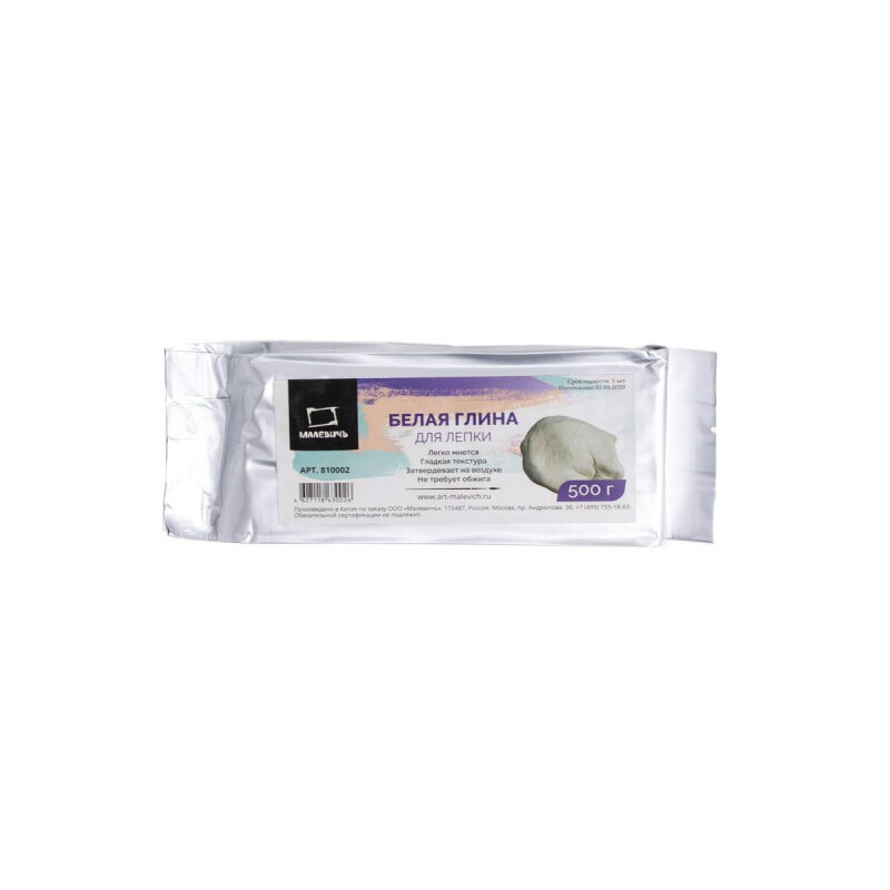Глина для лепки Малевичъ, белая, 500 г, вакуумированная .