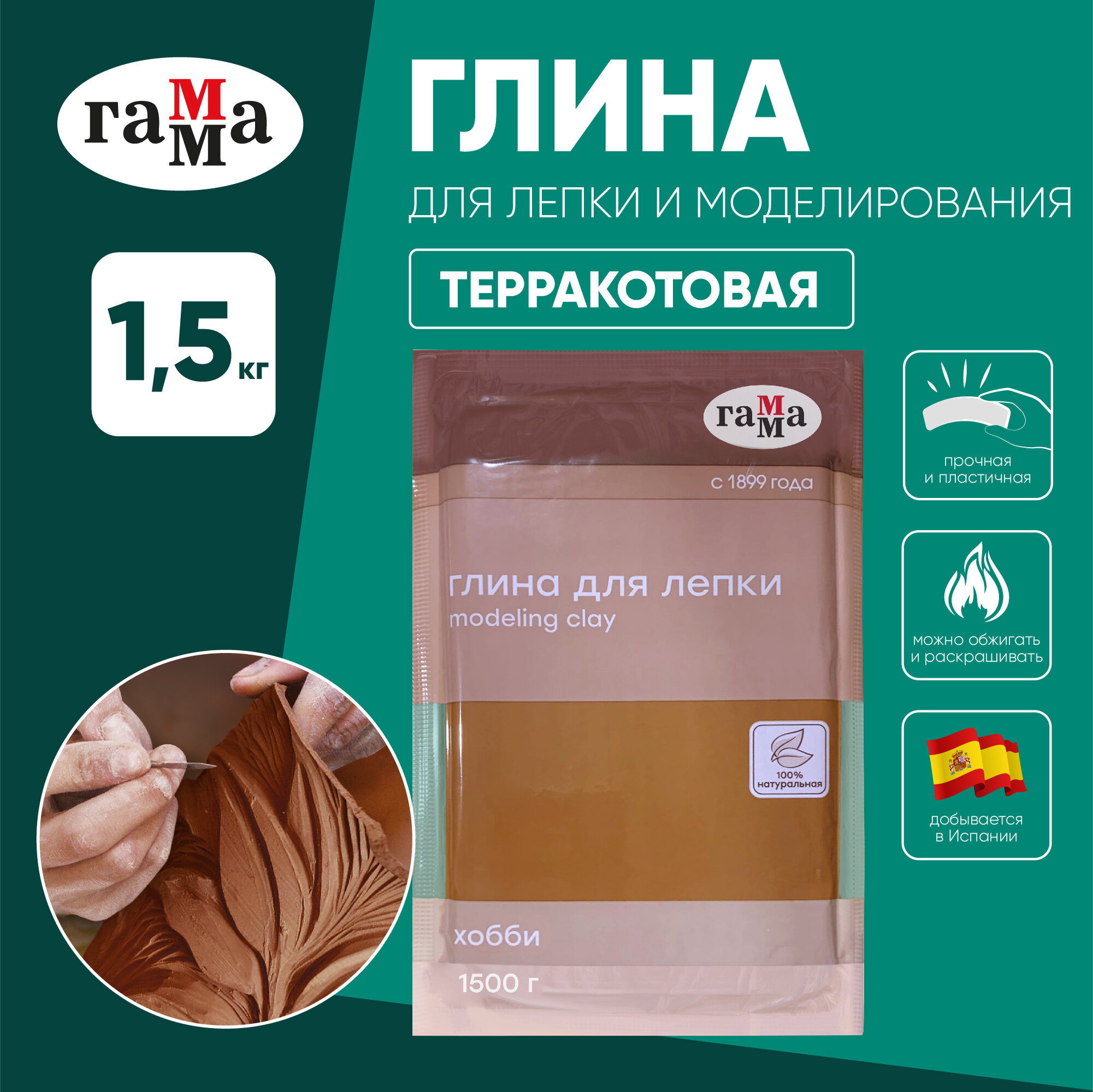Глина натуральная для лепки 1500 г, цвет терракотовый, Гамма "Хобби", (подходит для обжига), вакуумированная, /Испания/ (комплект из 5 шт)