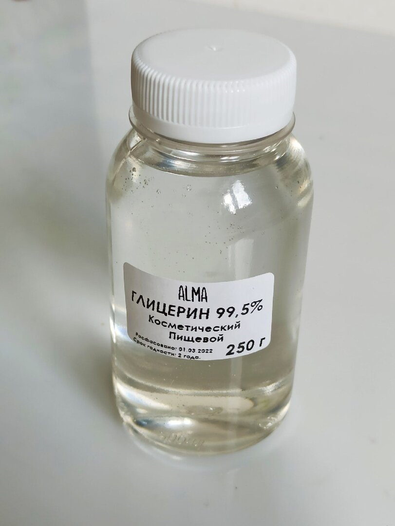 Глицерин ALMA прозрачный, жидкий, пищевой, аптечный, косметический, дистиллированый 99,5%, 400 г