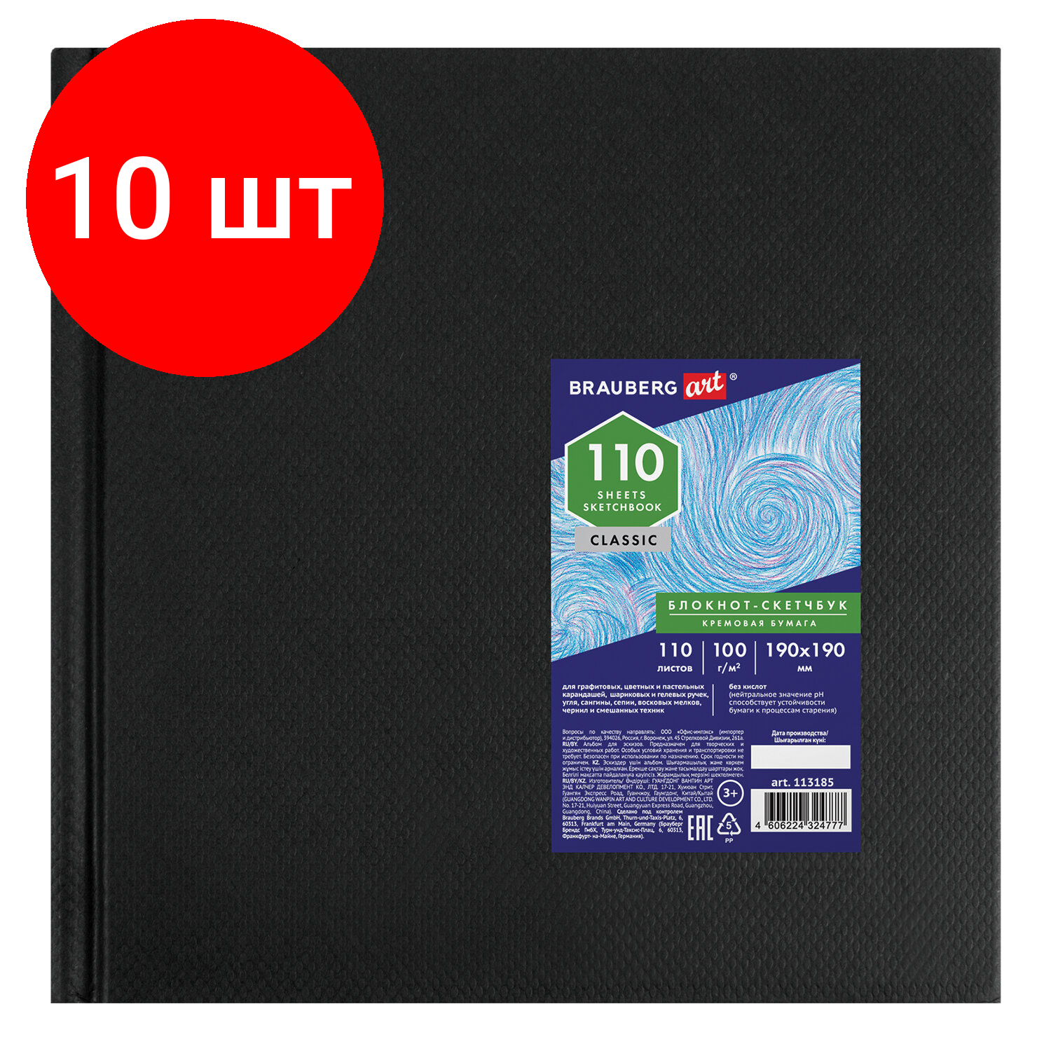 СохранитьКомплект 10 шт, Скетчбук, слоновая кость, 100 г/м2, 190х190 мм, 110 л., книжный твердый переплет, BRAUBERG ART, 113185 интересное: