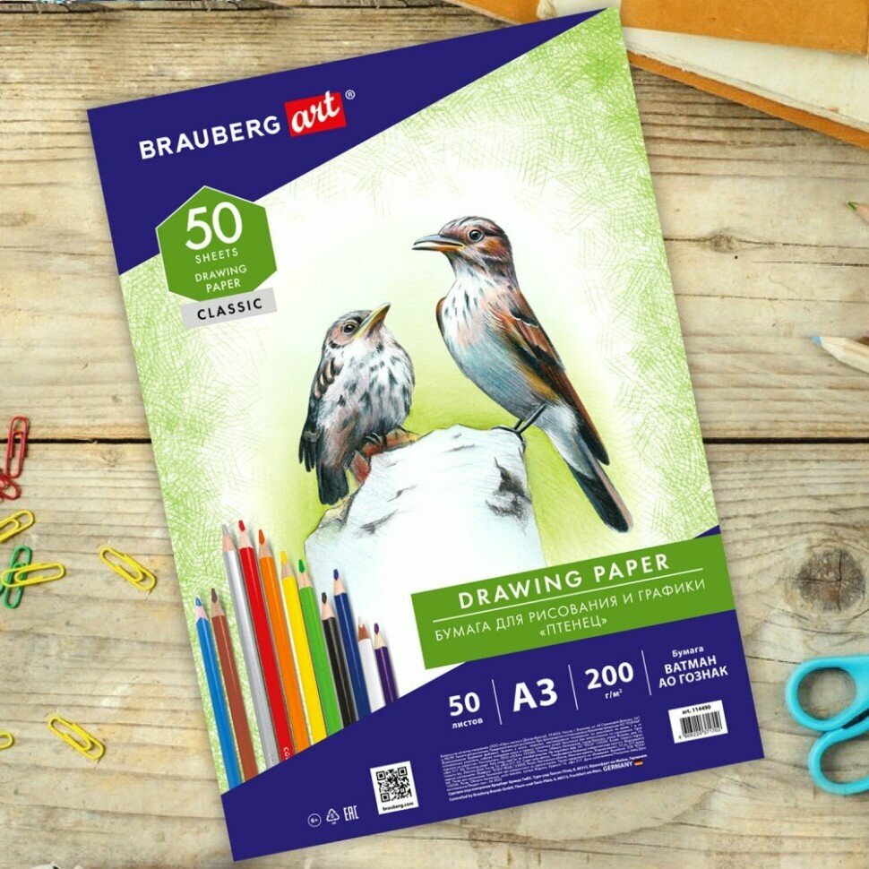 СохранитьКомплект 2 шт, Бумага для рисования А3, 50 л., 200 г/м2, ватман гознак, BRAUBERG ART CLASSIC, 114490 интересное: