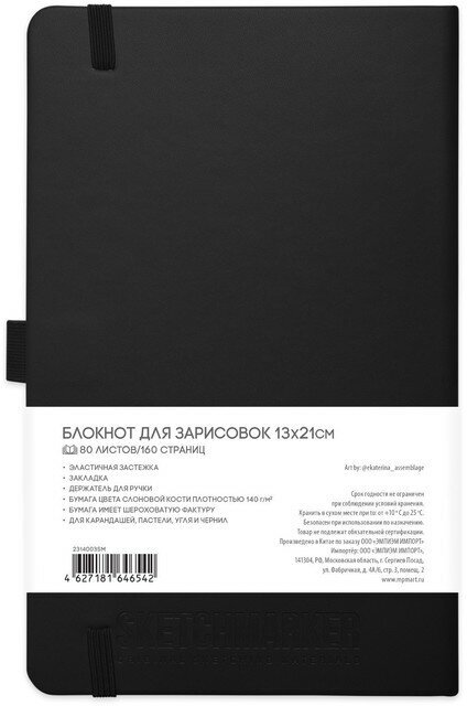 СохранитьСкетчбук для рисования и скетчинга SKETCHMARKER 140г/м2 13х21см. 160 страниц цвета слоновой кости, твердая обложка, цвет: черный интересное:
