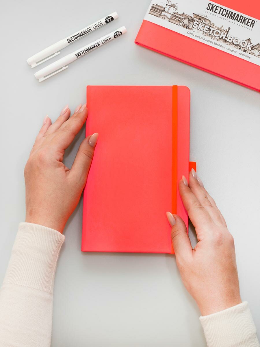 Скетчбук для рисования, блокнот для скетчинга SKETCHMARKER Sketchmarker 140г/кв. м 13*21см 80л твердая обложк, цвет Неоновый коралл