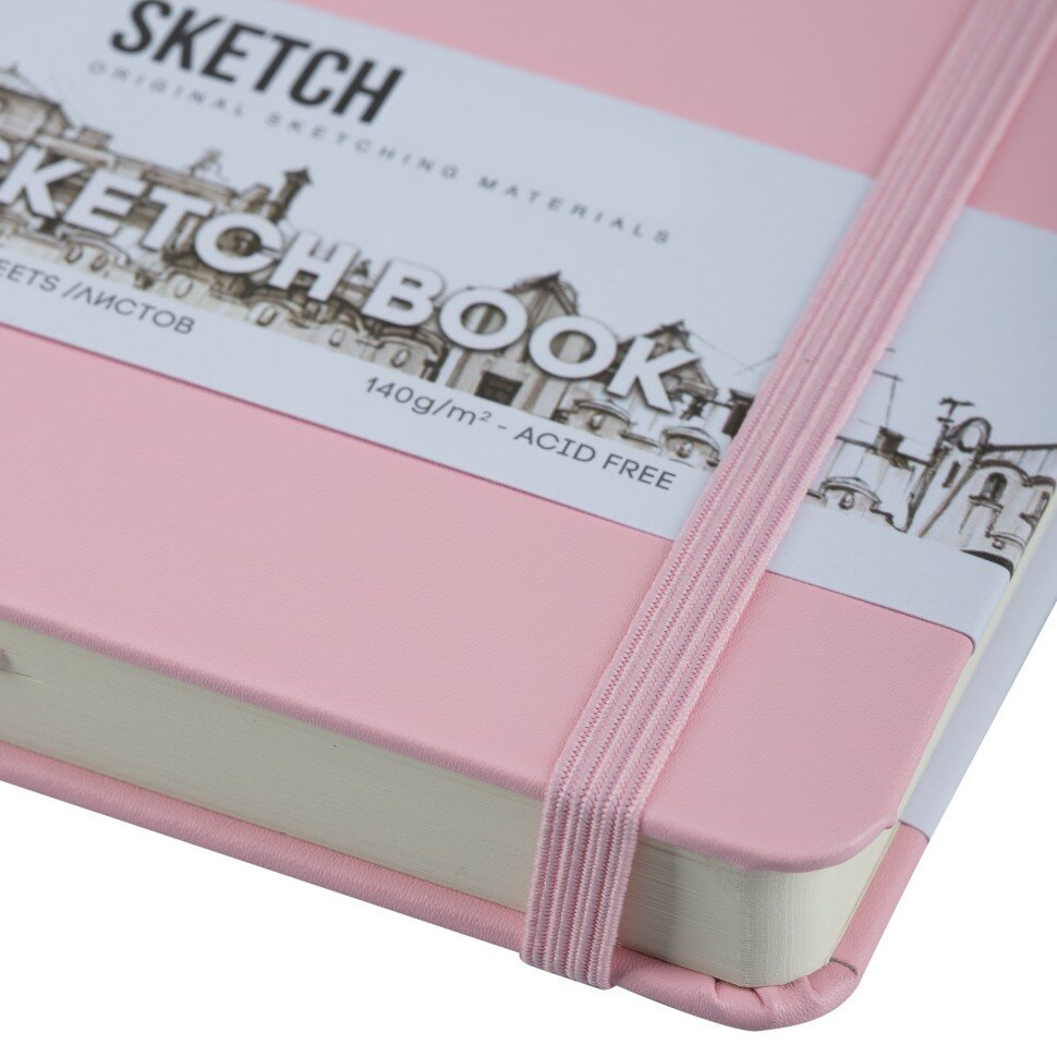 Скетчбук для рисования и скетчинга SKETCHMARKER 140г/м2 13х21см. 160 страниц цвета слоновой кости, твердая обложка, цвет: розовый