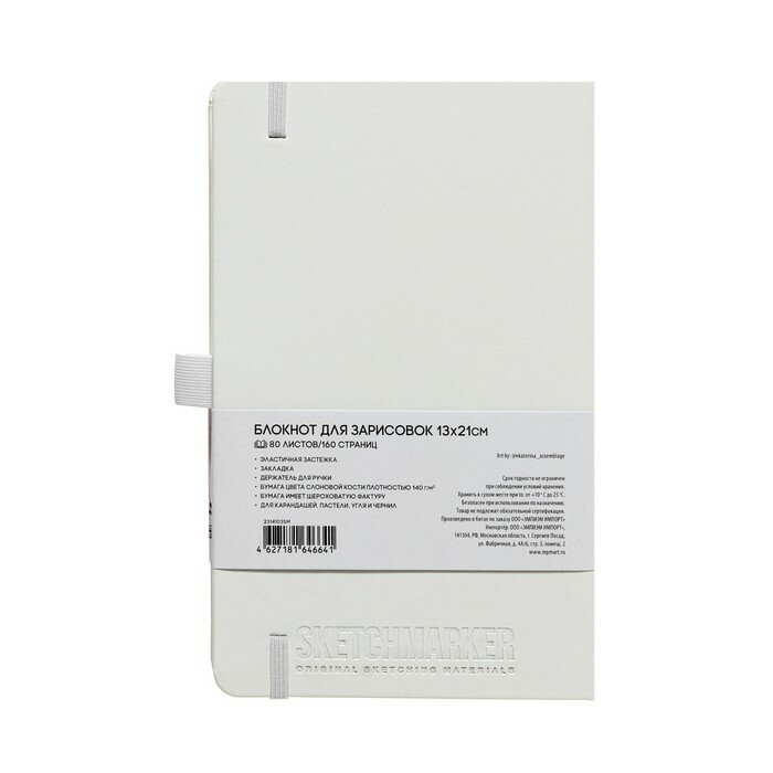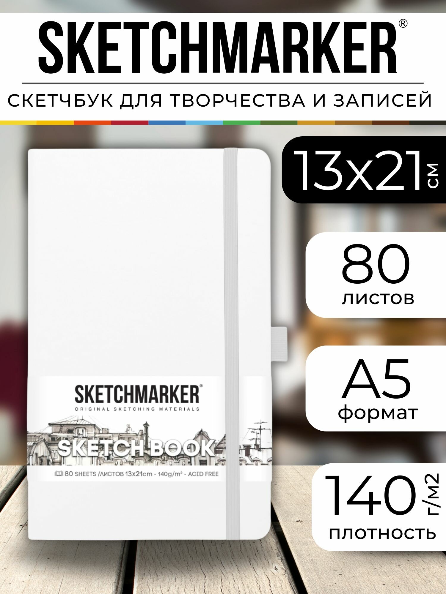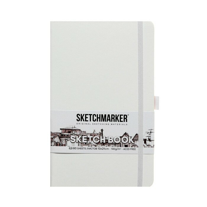 Купить Скетчбук для рисования и скетчинга SKETCHMARKER 140г/м2 13х21см. 160 страниц цвета слоновой кости, твердая обложка, цвет: белый