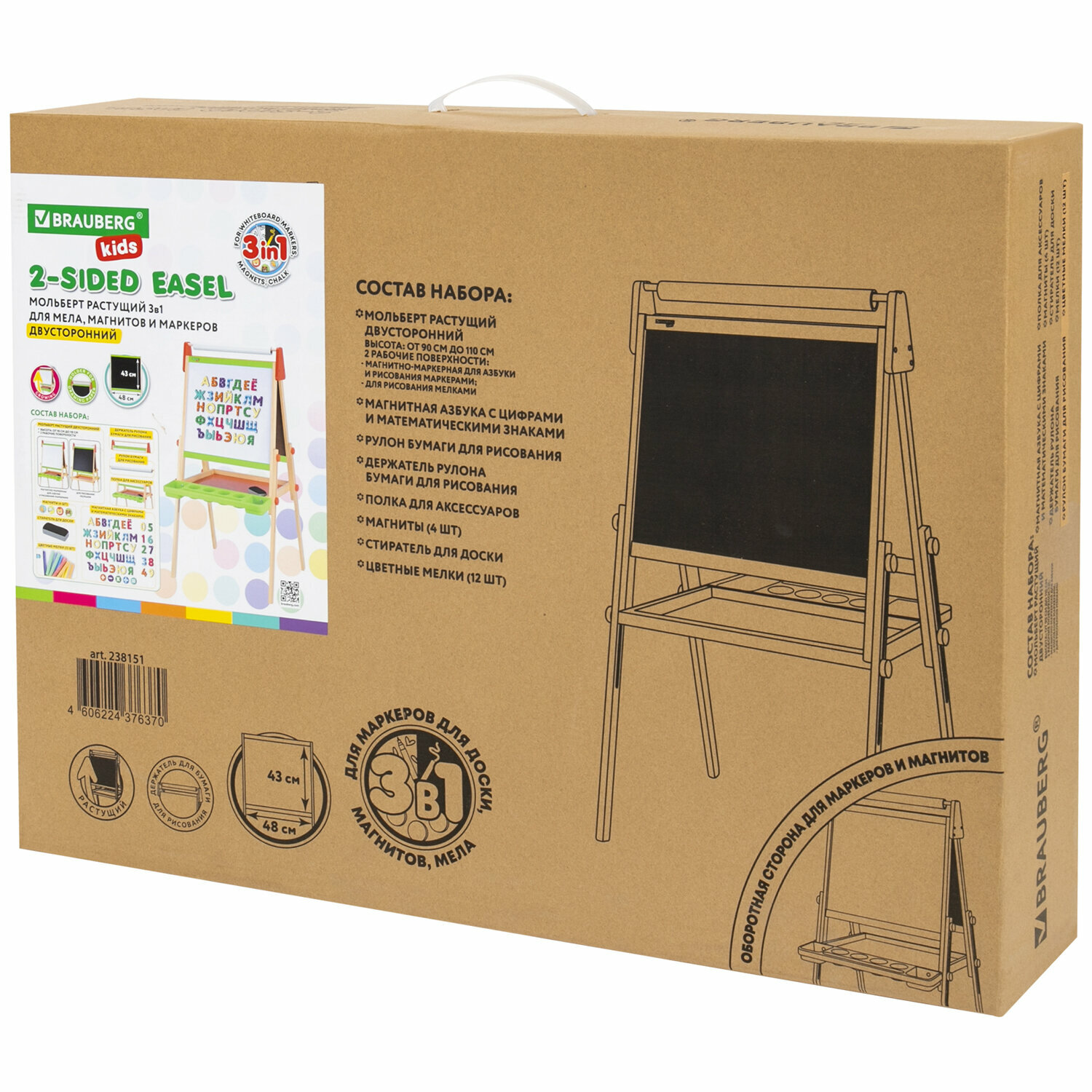 Купить Мольберт растущий 3 в 1 для мела/магнитно-маркерный 48х43 см, BRAUBERG KIDS, 238151