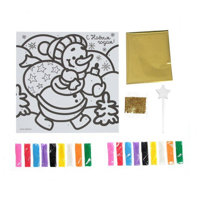 Купить Фреска блёстками и фольгой на новый год «Снеговик», новогодний набор для творчества