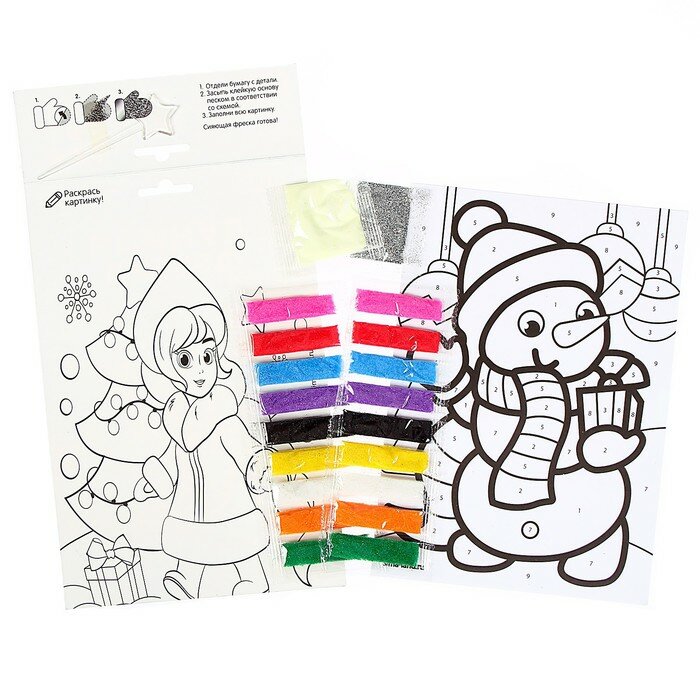 Фреска песком "Морской дуэт" + 9 цветов песка по 4 гр, блёстки, стека 1шт.