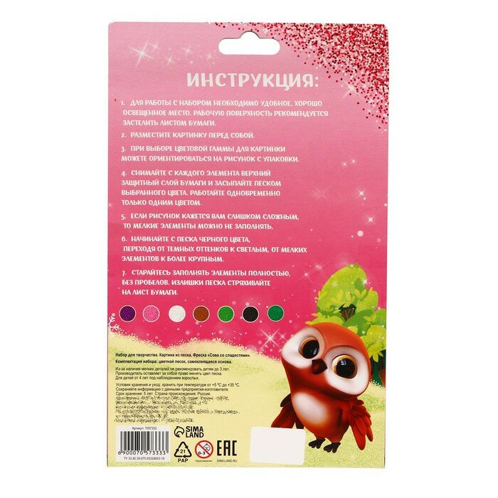 Фреска песком « Сова со сладостями» интересное: