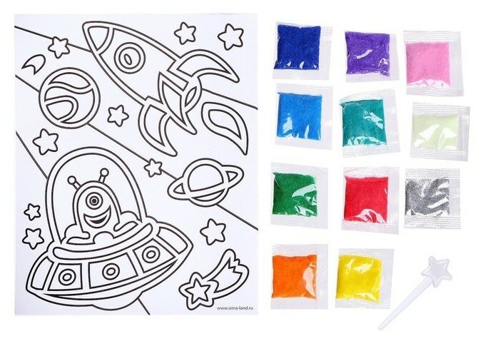 Фреска песком "Морской дуэт" + 9 цветов песка по 4 гр, блёстки, стека 1шт.