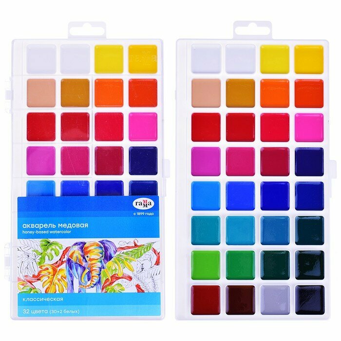 Краски акварельные медовые 32 цвета Гамма "Классическая", без кисти, пластик (1009199), 7 уп.