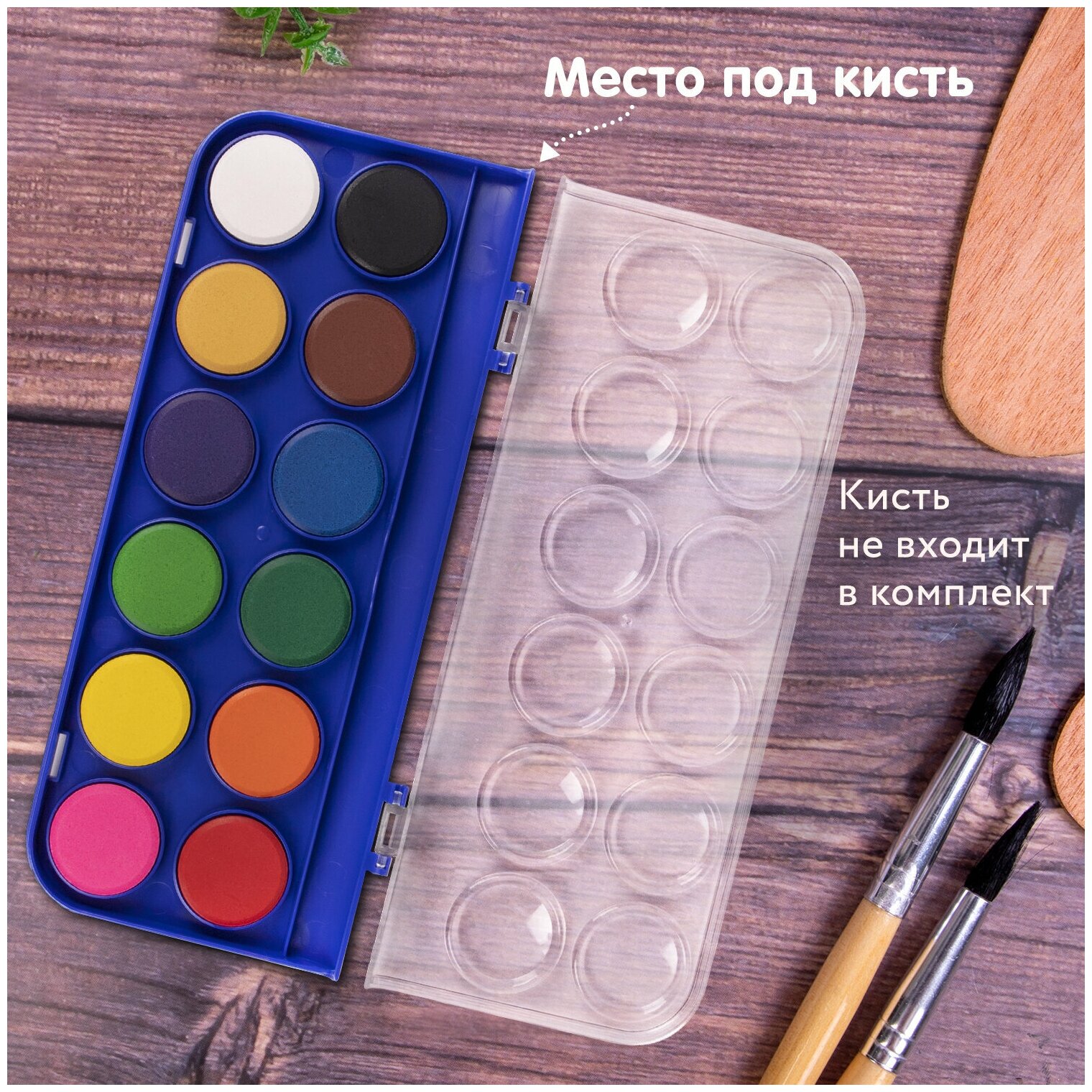 Краски акварельные для рисования сухие Brauberg Premium 12 цветов, круглые кюветы 28 мм, 191743