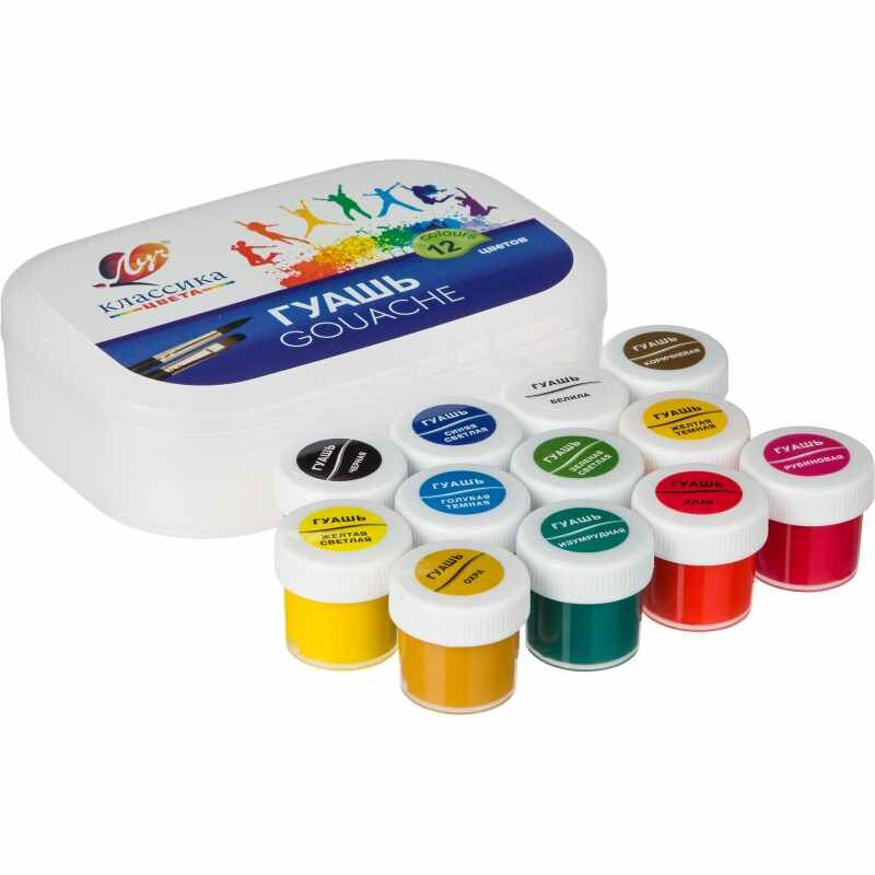 Гуашь "Классика" 12 цв (20 мл) в контейнере интересное: