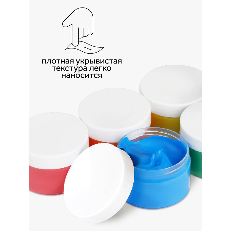 Комплект 6 шт, Краски пальчиковые Гамма "Малыш", сенсорные, 1+, 05 цветов, 50мл, картон. упаковка