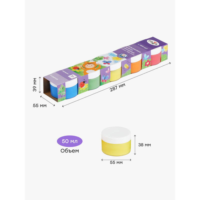 Комплект 7 шт, Краски пальчиковые Гамма "Малыш", 1+, 05 цветов, 50мл, картон. упаковка