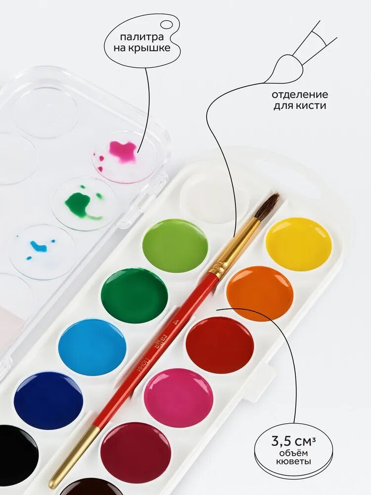 Краски акварельные для школы детские 12 цветов / Акварель медовая для рисования детям, набор красок Гамма "Мультики" / творчество для детей