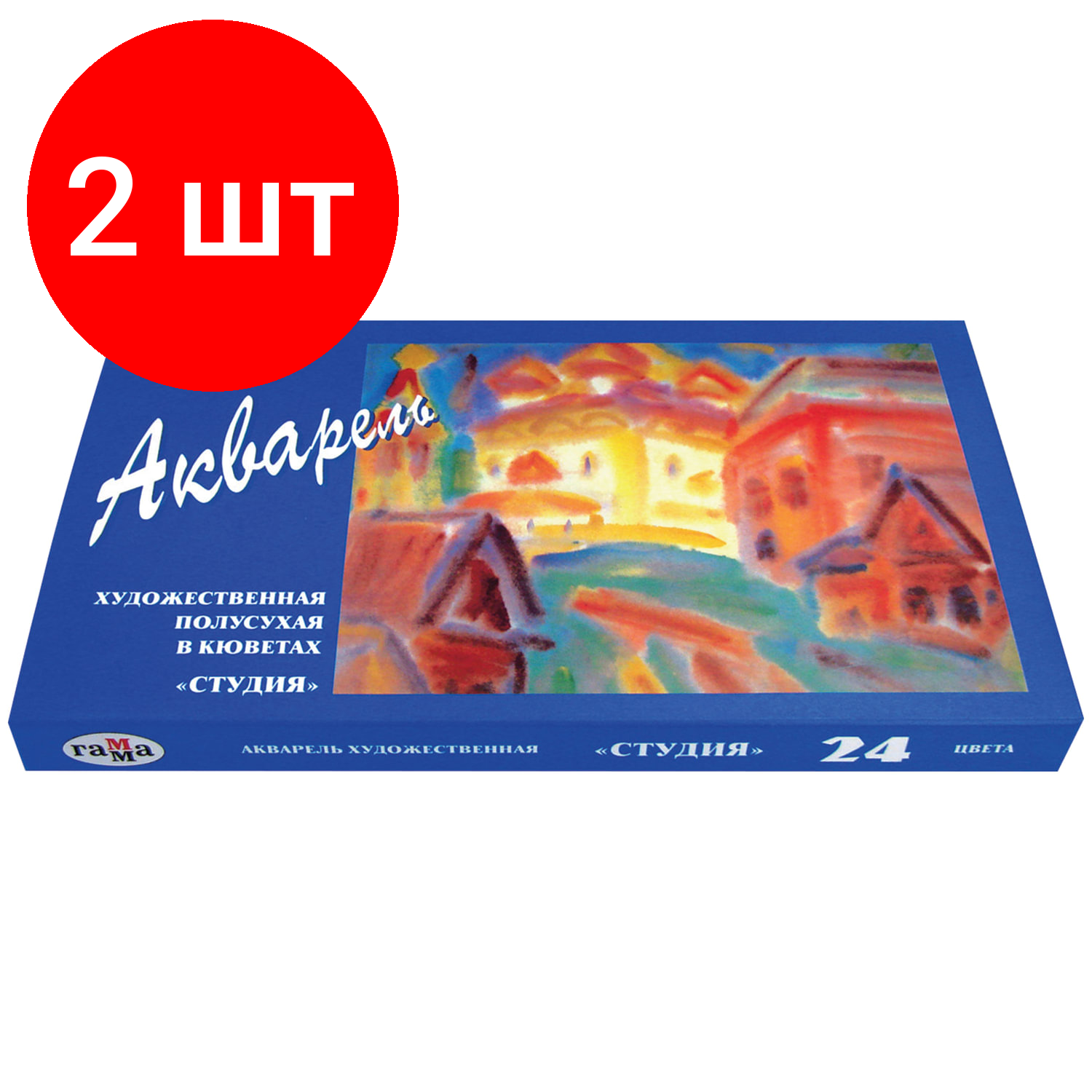 Купить Комплект 2 шт, Краски акварельные художественные гамма "Студия", 24 цвета, кювета 2.5 мл, картонная коробка, 215001