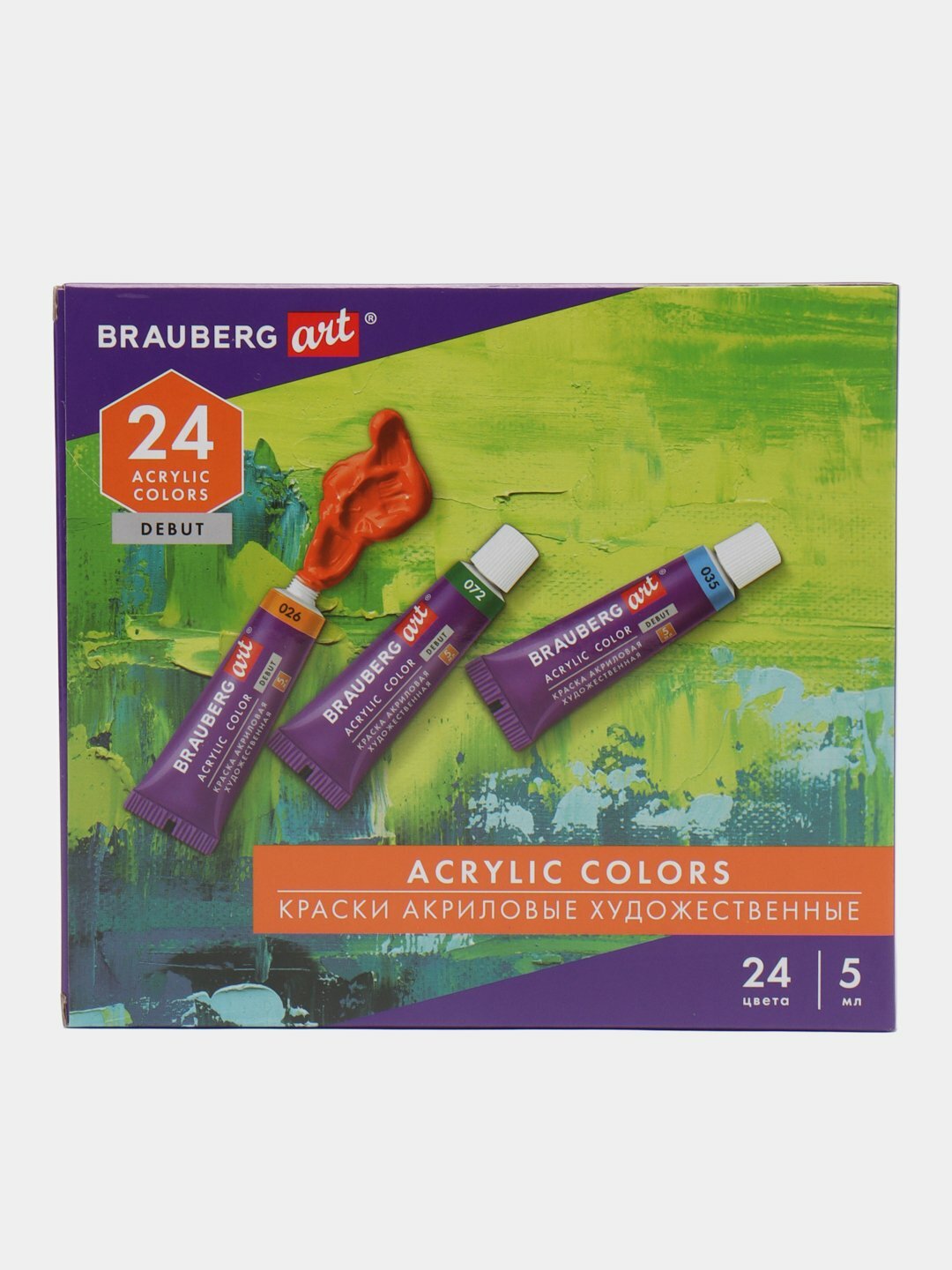 Акриловые краски набор для рисования, художественные 24 цвета по 5 мл в тюбиках, Brauberg Art Debut, 192386