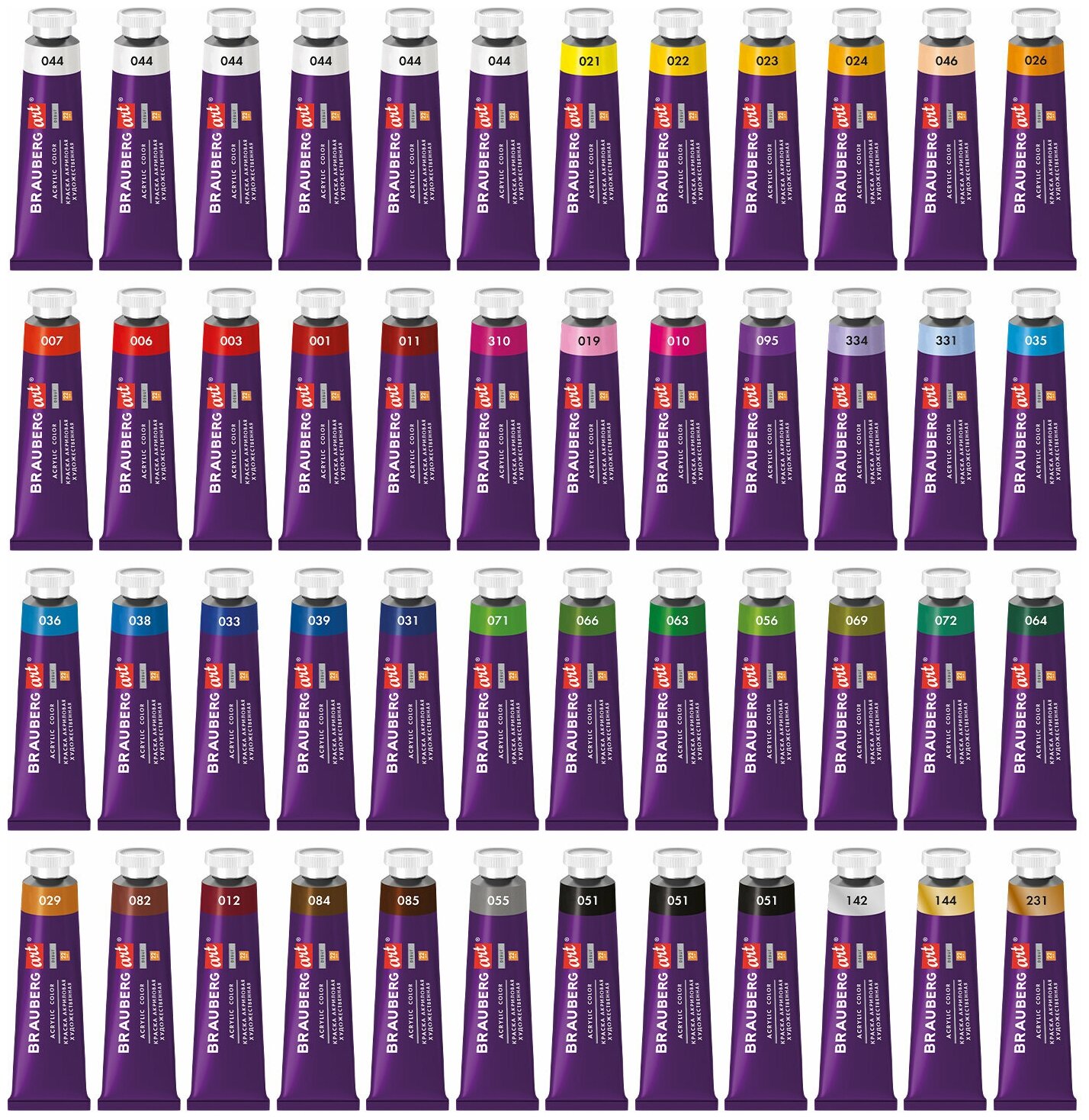 Краски акриловые Brauberg художественные, набор 48 штук, 41 цвет по 12 мл, в тубах, ART DEBUT, 192295