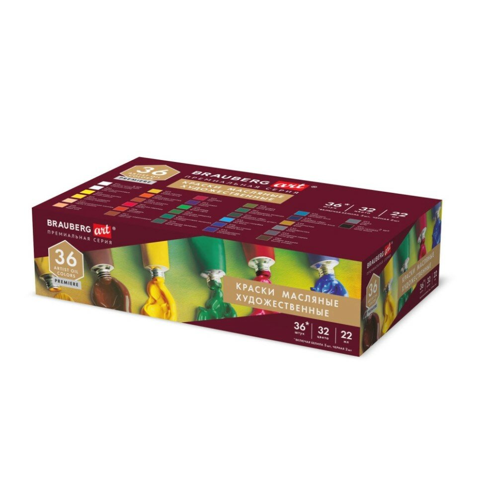 Краски масляные Brauberg художественные набор "PREMIERE 36 штук 32 цвета!", в тубах 22 мл, ART, 192009