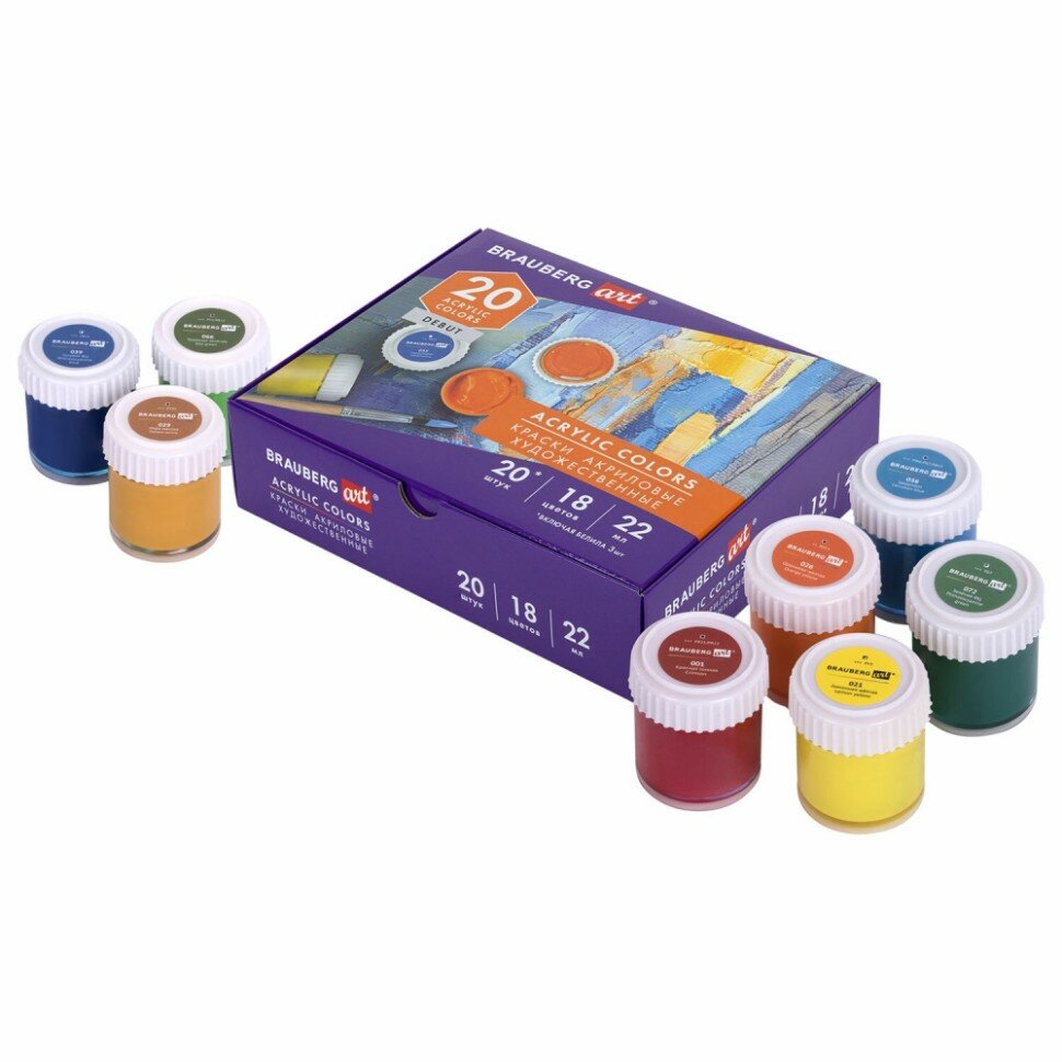 Краска акриловая, набор 18 цветов/20 штук х 22 мл, Brauberg ART Debut, 192299 Brauberg 9513719 .