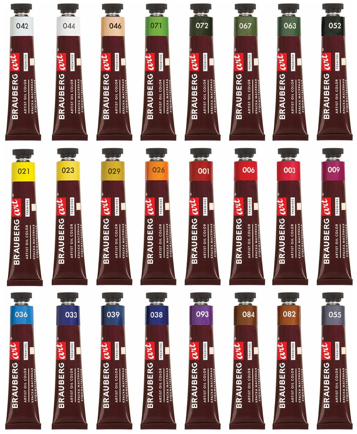 Краски масляные художественные BRAUBERG ART PREMIERE, 24 цв по 22 мл, проф. серия, в тубах, 191460