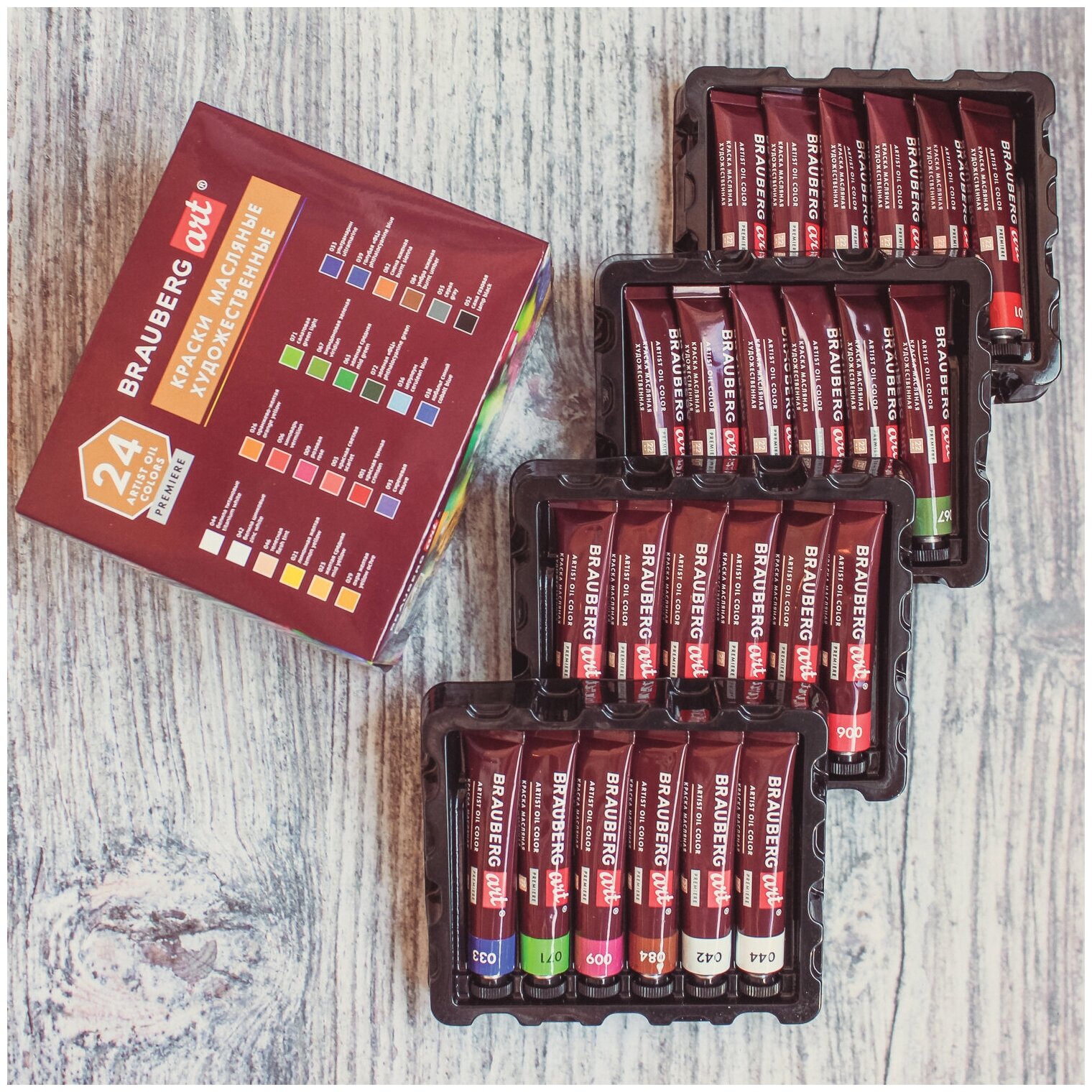 СохранитьКраски масляные художественные BRAUBERG ART PREMIERE, 24 цв. по 22 мл, в тубах, 191460 интересное:
