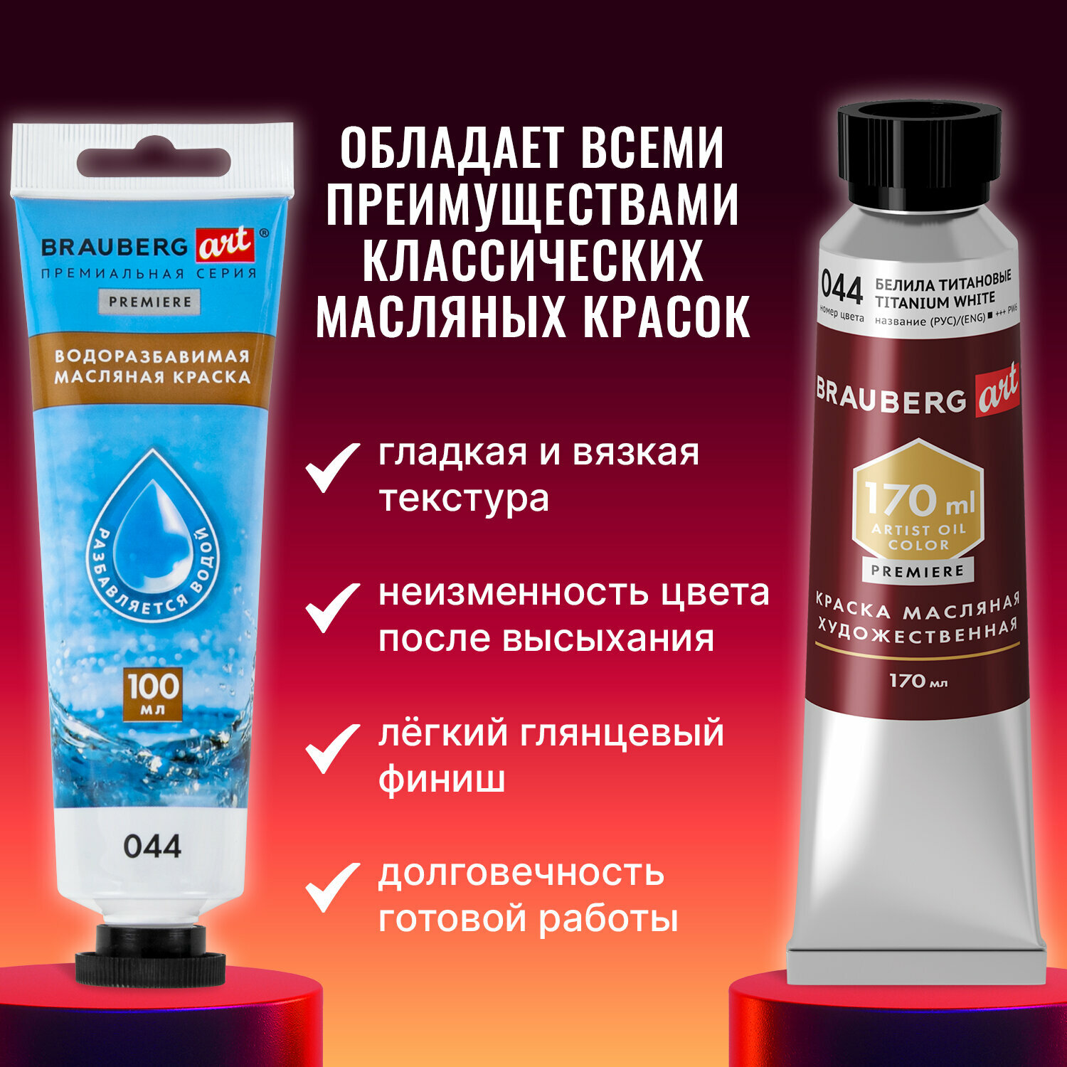 Краски масляные художественные BRAUBERG ART PREMIERE, 24 цв. по 22 мл, в тубах, 191460