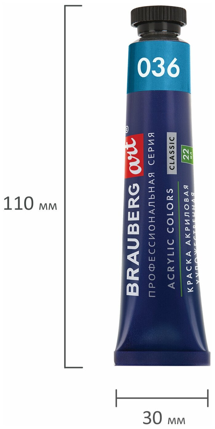 Краски акриловые художественные, набор 12 штук по 22 мл, в тубах, BRAUBERG ART DEBUT, 192300, 192300