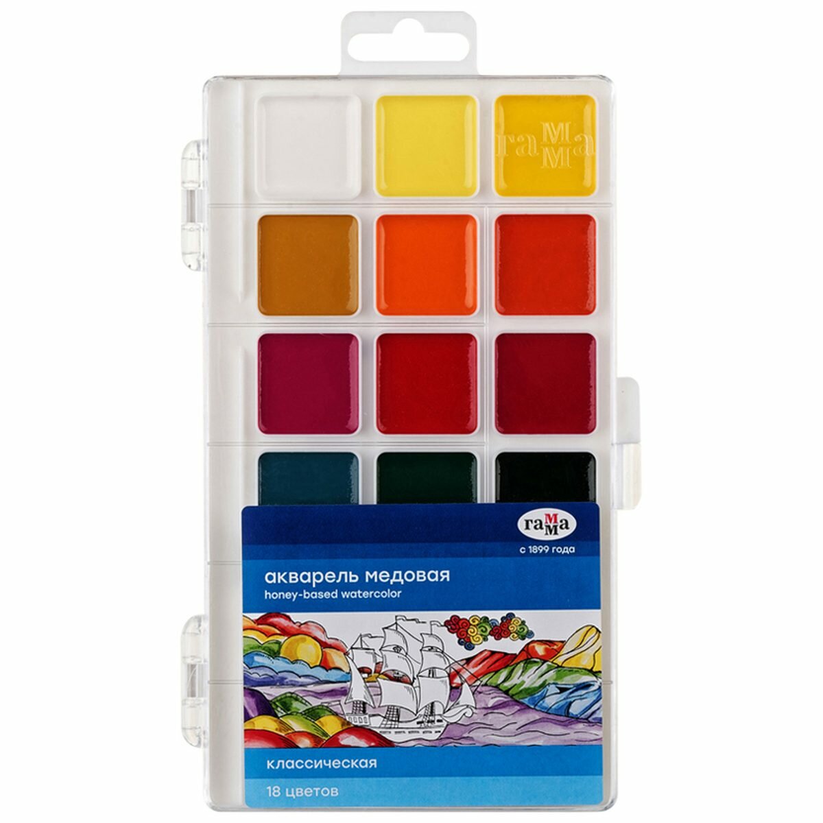 Краски акварельные гамма "Классическая", 18 цветов, медовая, пласт. кор.,европодвес, 1009196