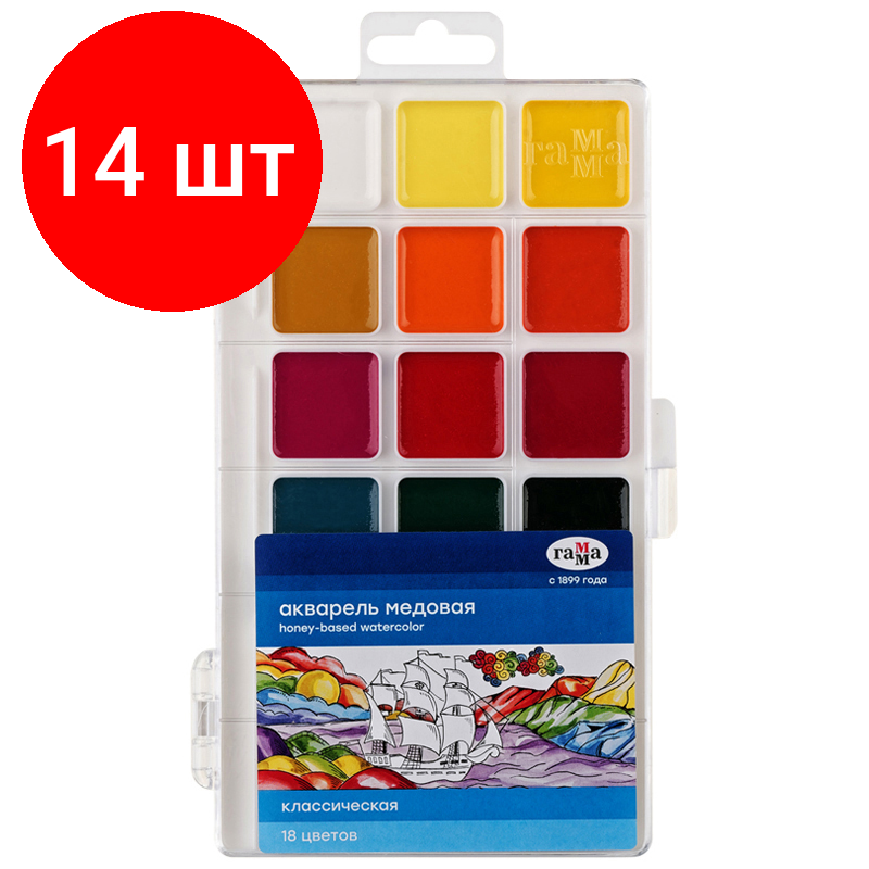 Купить Комплект 14 шт, Акварель Гамма "Классическая", медовая, 18 цветов, без кисти, пластик. упак., европодвес NEW