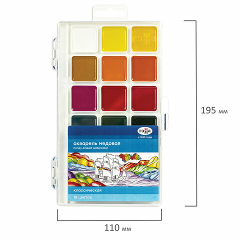 Акварель 18 цветов Гамма "Классическая", медовая, без кисти,