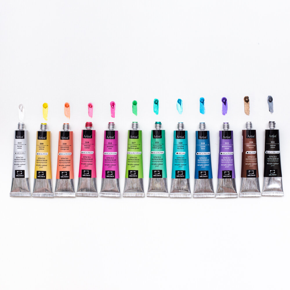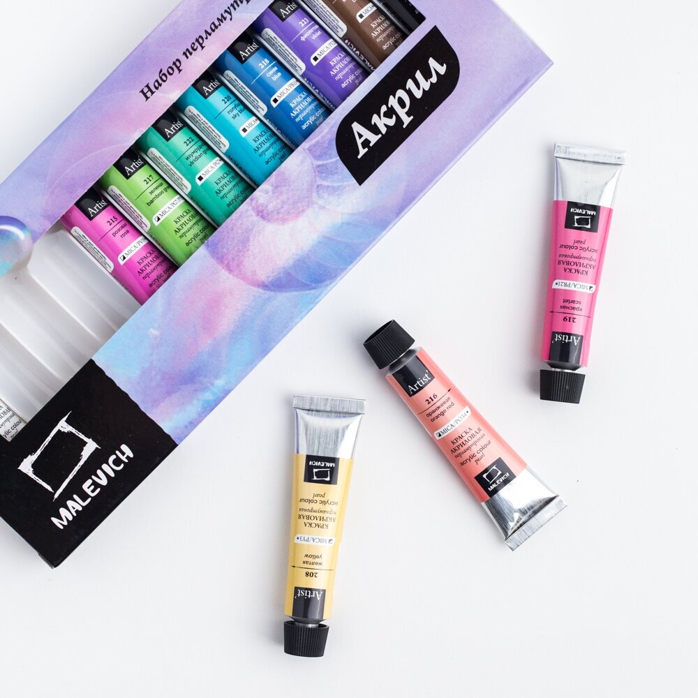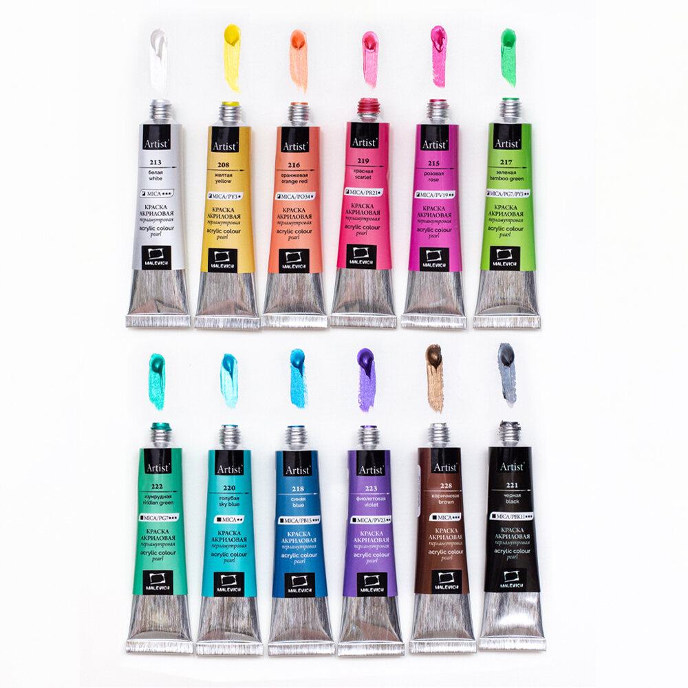 Набор перламутровых акриловых красок Малевичъ, 12 цветов по 12 мл интересное: