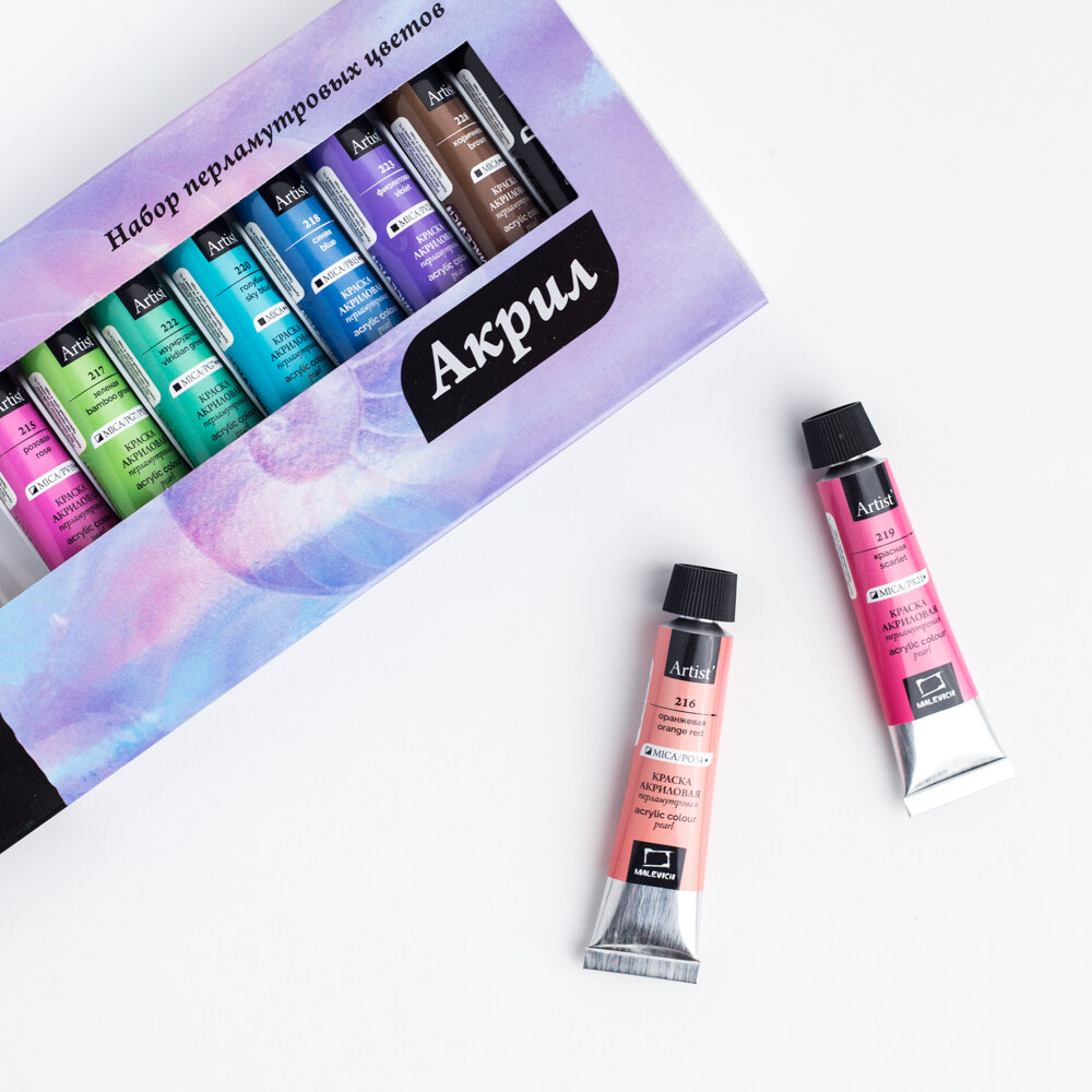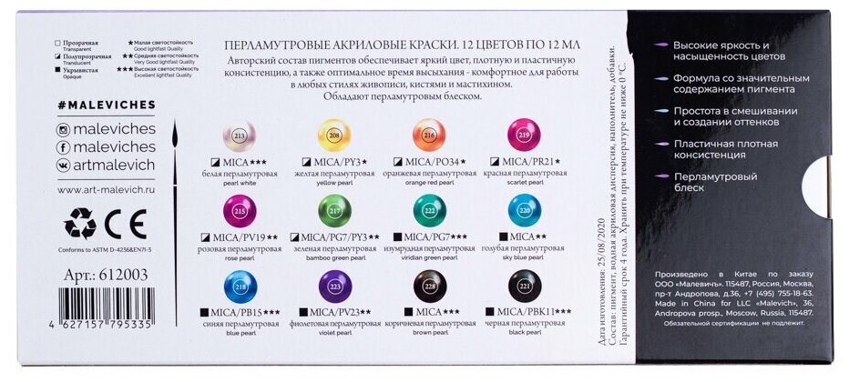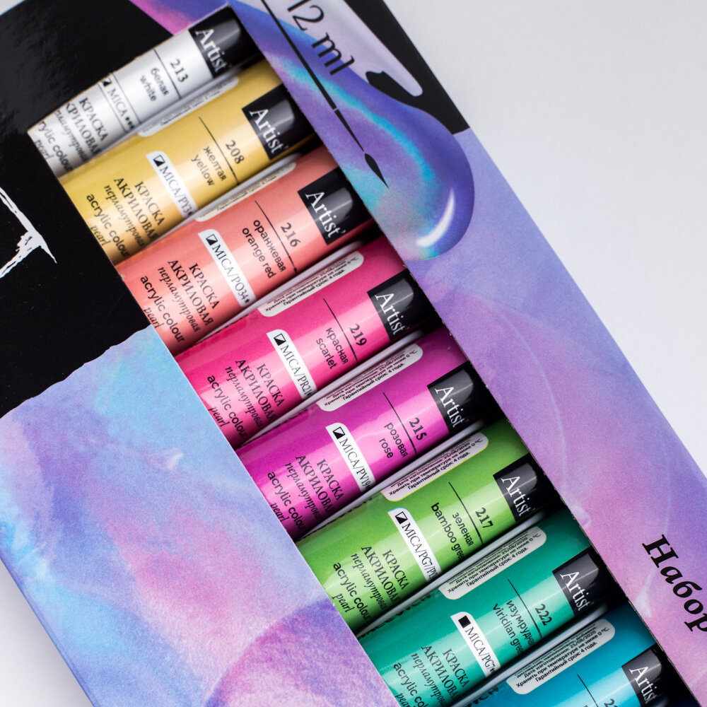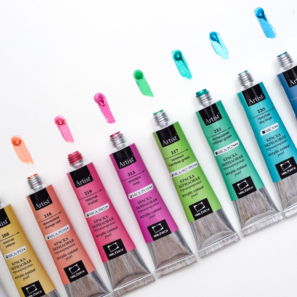 Набор перламутровых акриловых красок Малевичъ, 12 цветов по 12 мл интересное: