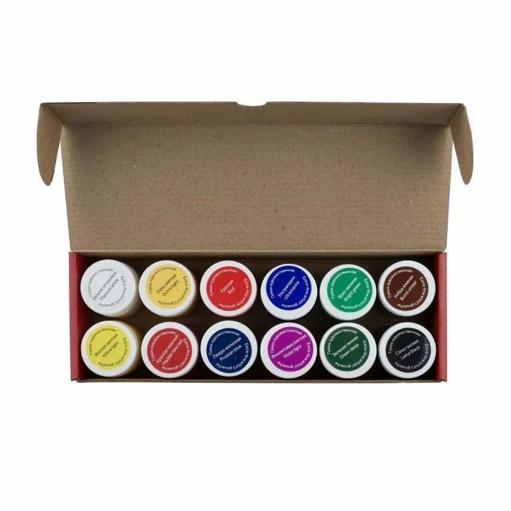 Гуашь художественная «Мастер-класс», 12 цветов по 40 мл, 1741010