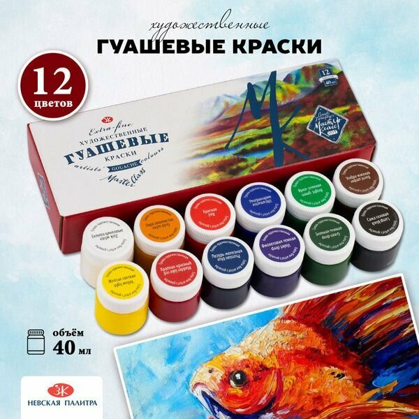 Купить Гуашь художественная "Мастер-класс", 12 цветов по 40 мл, 1741010