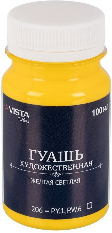 Купить Краска гуашь "VISTA-ARTISTA" "Gallery" художественная группа 1 VAG-100 100 мл 206_Желтая светлая (Yellow light)