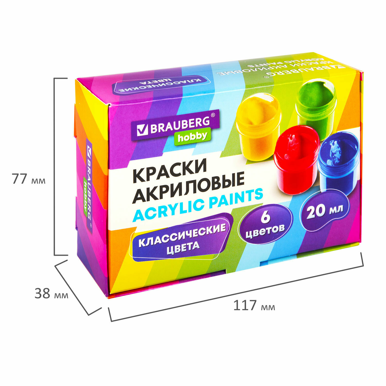Купить Краски акриловые набор 6 цветов по 20 мл BRAUBERG HOBBY, 192434