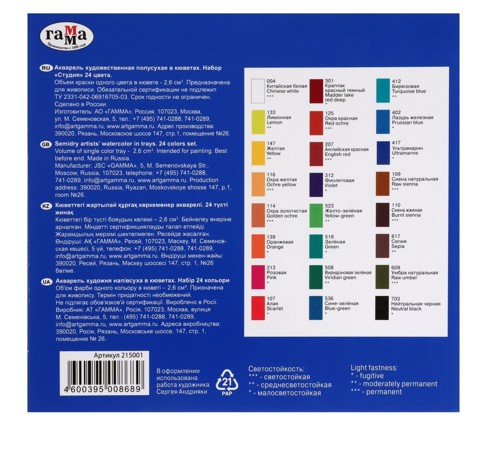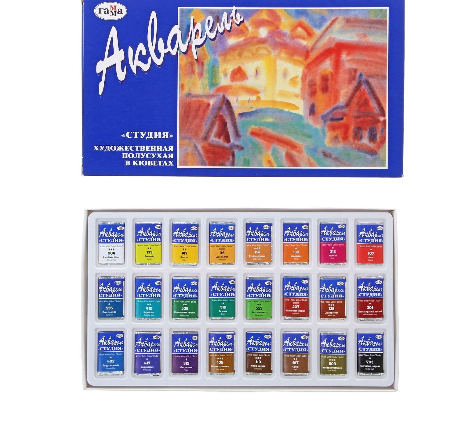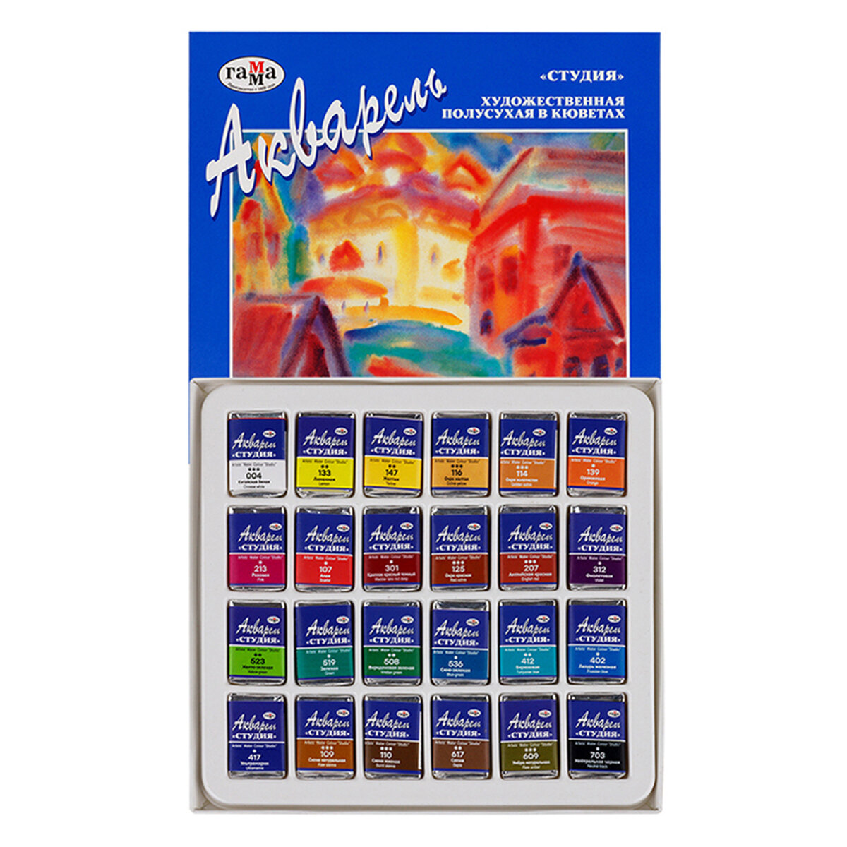 Акварель Гамма "Студия", художественная, 24 цвета, кюветы, картон