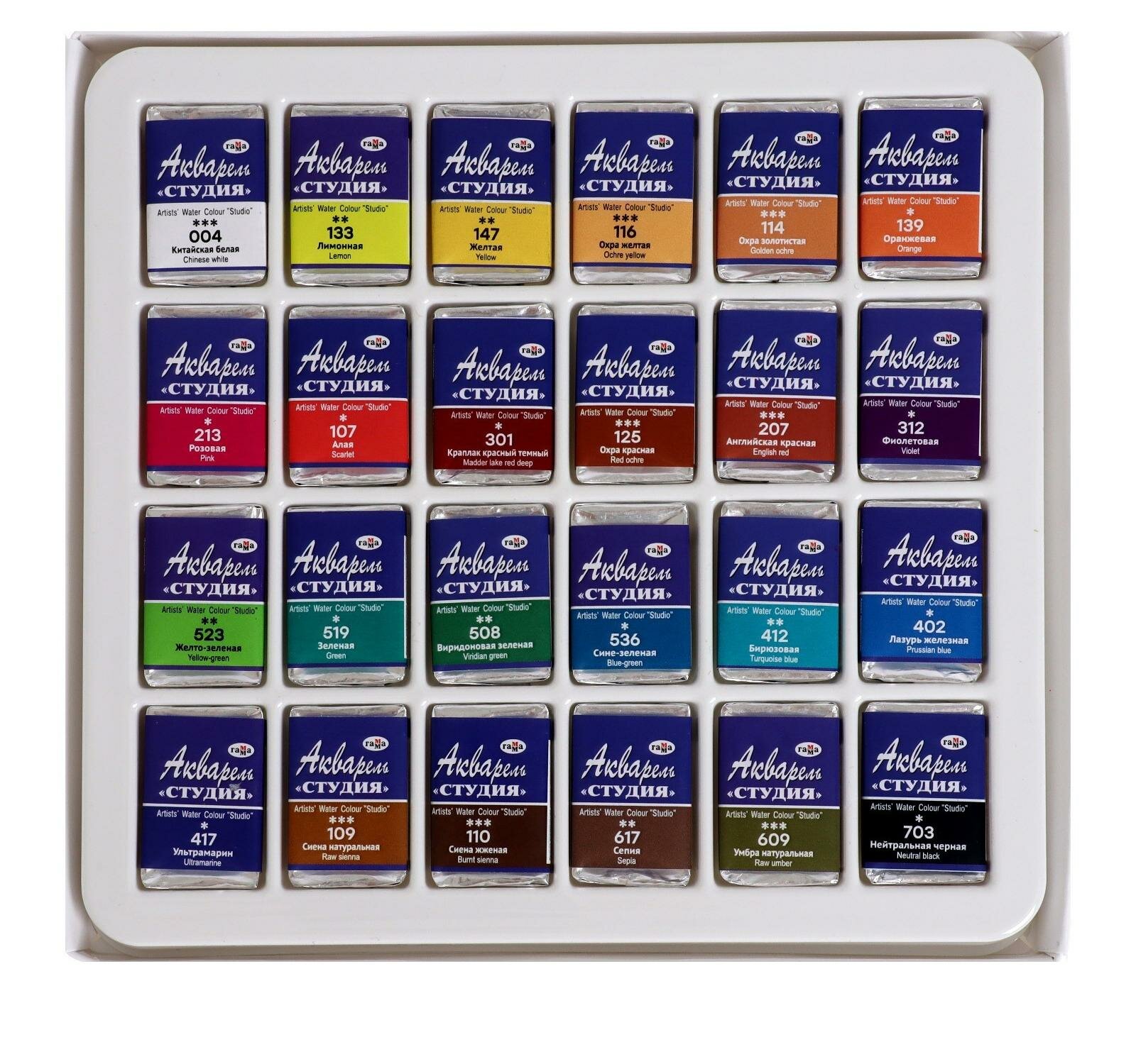 Акварель художественная набор в кюветах 24 цвета х 2.5 мл, Гамма Студия 1071245